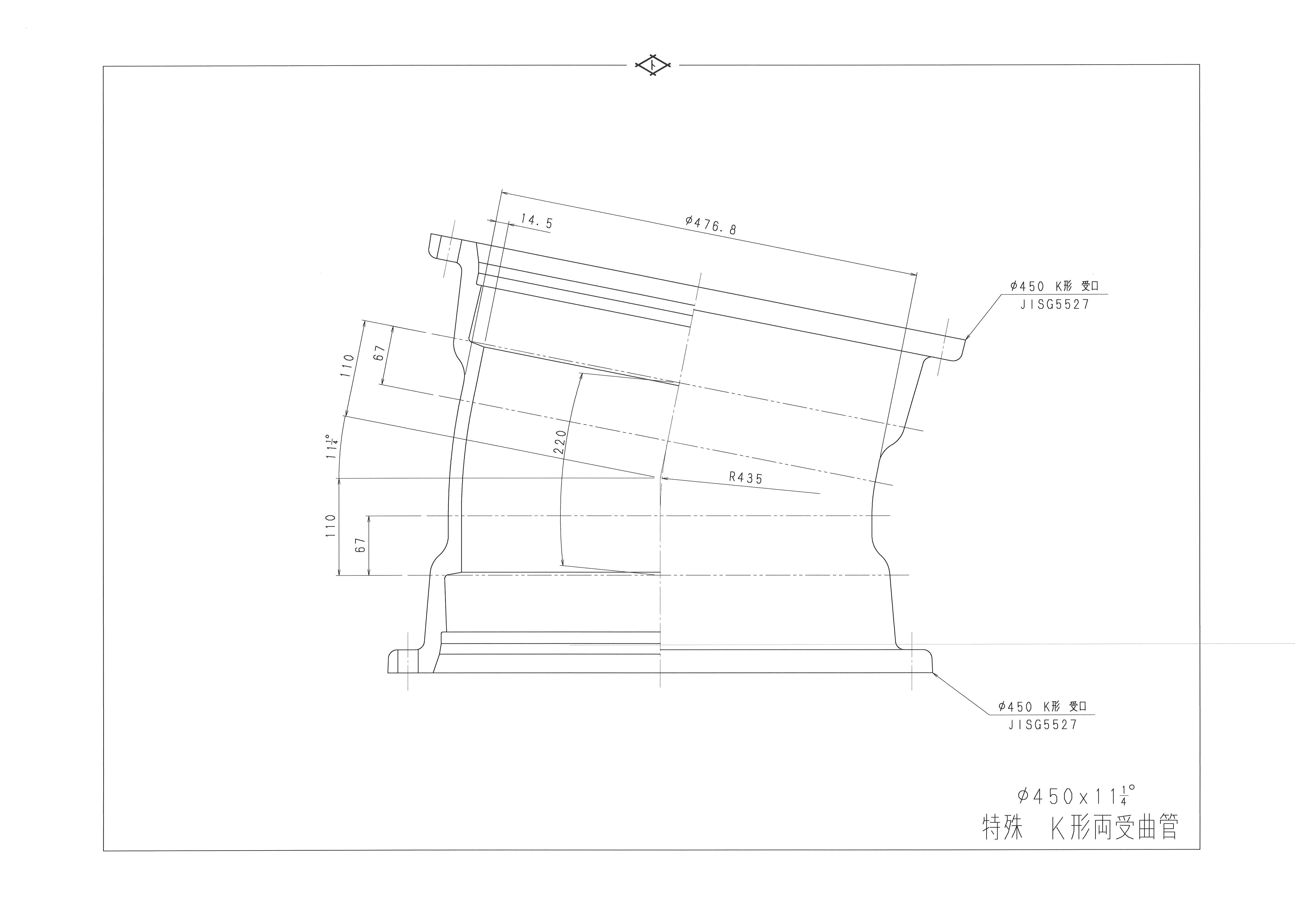 主要材質:ダクタイル鋳鉄 接続形式:JDPAダクタイル鋳鉄異形管規格、及び規格外の特殊形状にも対 応可能です。 製品仕様:JIS G 5527準拠 |